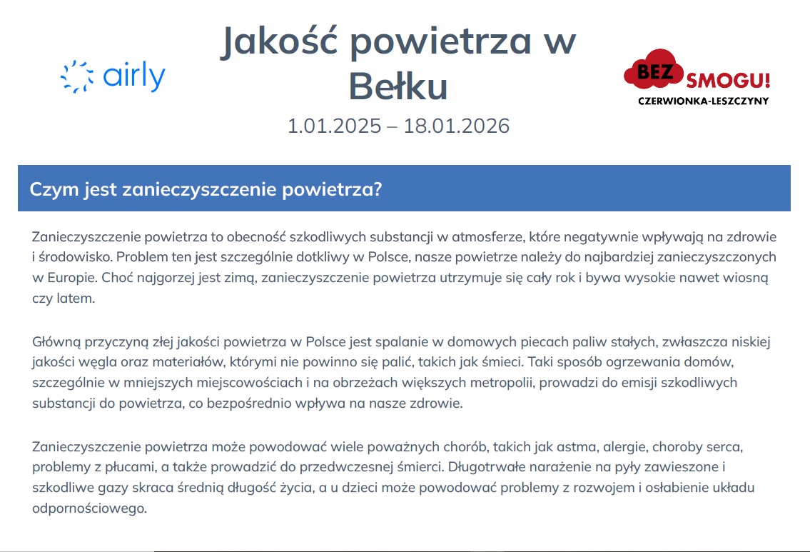fact-sheet_Jakość-powietrza---Bełk_1.01.2025–18.01.2026Przypominamy, że zgodnie z zapisami Uchwały antysmogowej dla województwa śląskiego, od 1 stycznia 2026 roku obowiązuje całkowity zakaz użytkowania kotłów pozaklasowych.