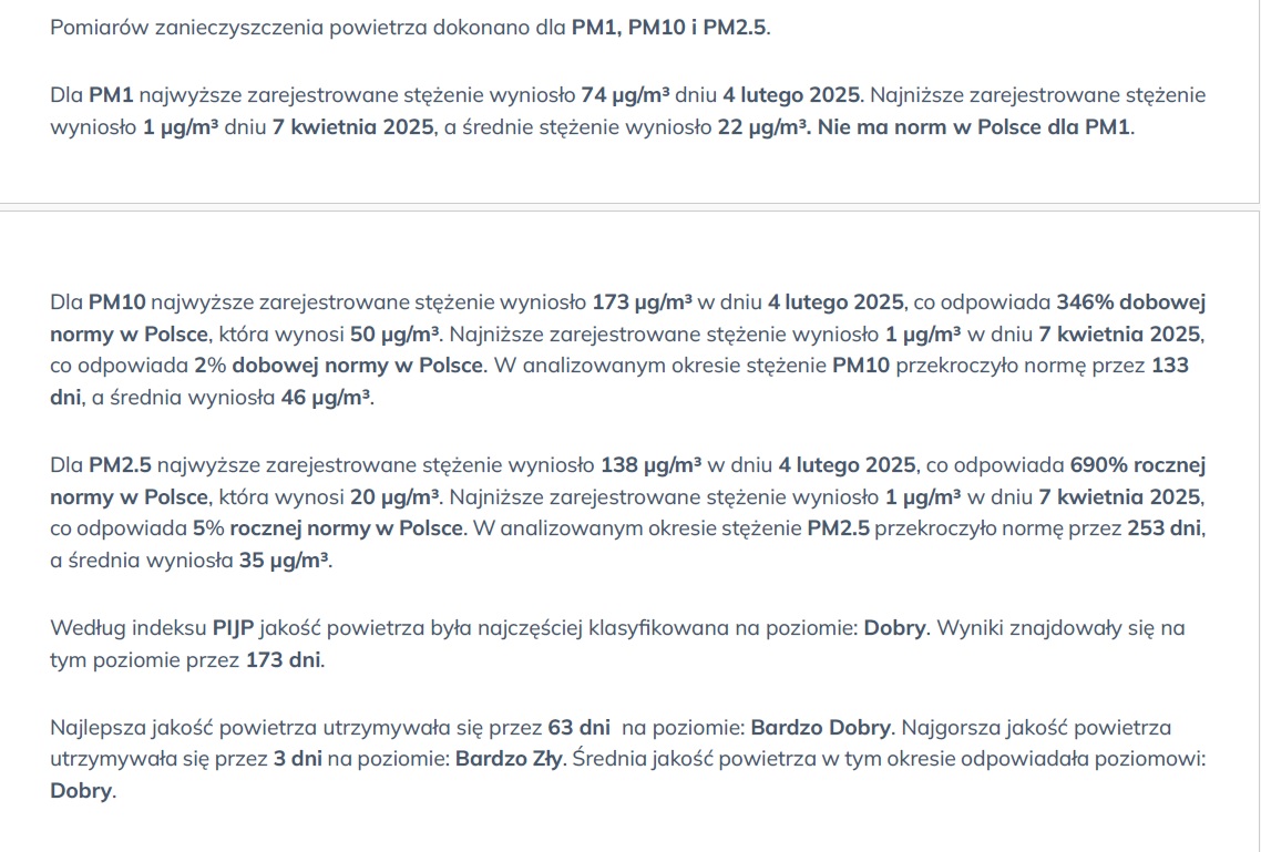 Raport dotyczący jakości powietrza za miniony rok 2025