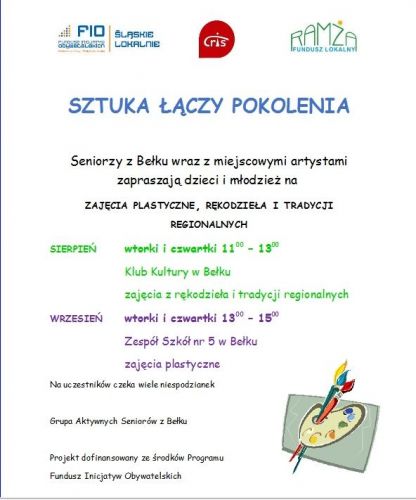 sierpień - wtorki i czwartki 11:00–13:00 w Klubie Kultury w Bełku - zajęcia z rękodzieła i tradycji regionalnych,