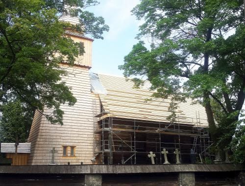 Prace porządkowe związane są z zakończeniem III etapu prac remontowo-konserwatorskich przy zabytkowym drewnianym kościółku.