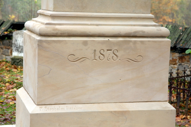 Data powstania obiektu oraz sygnatura zakladu kamieniarskiego (F. Strobalm Ratibor)